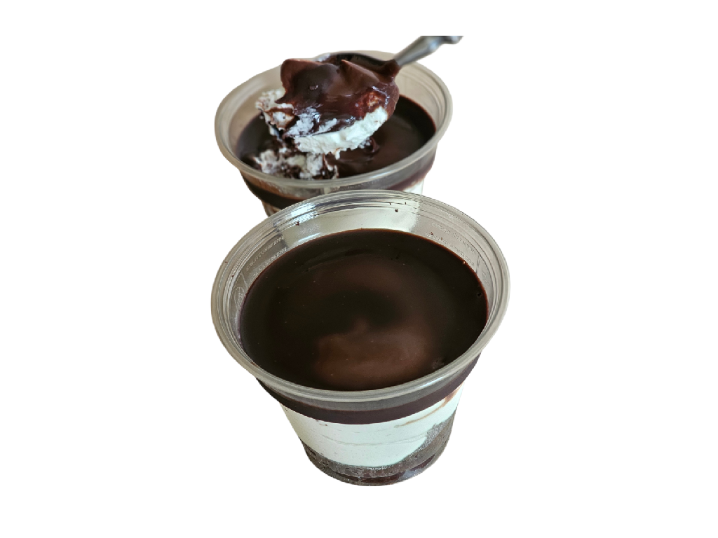 Tvarohový dezert Míša s čokoládovou ganáž polevou.