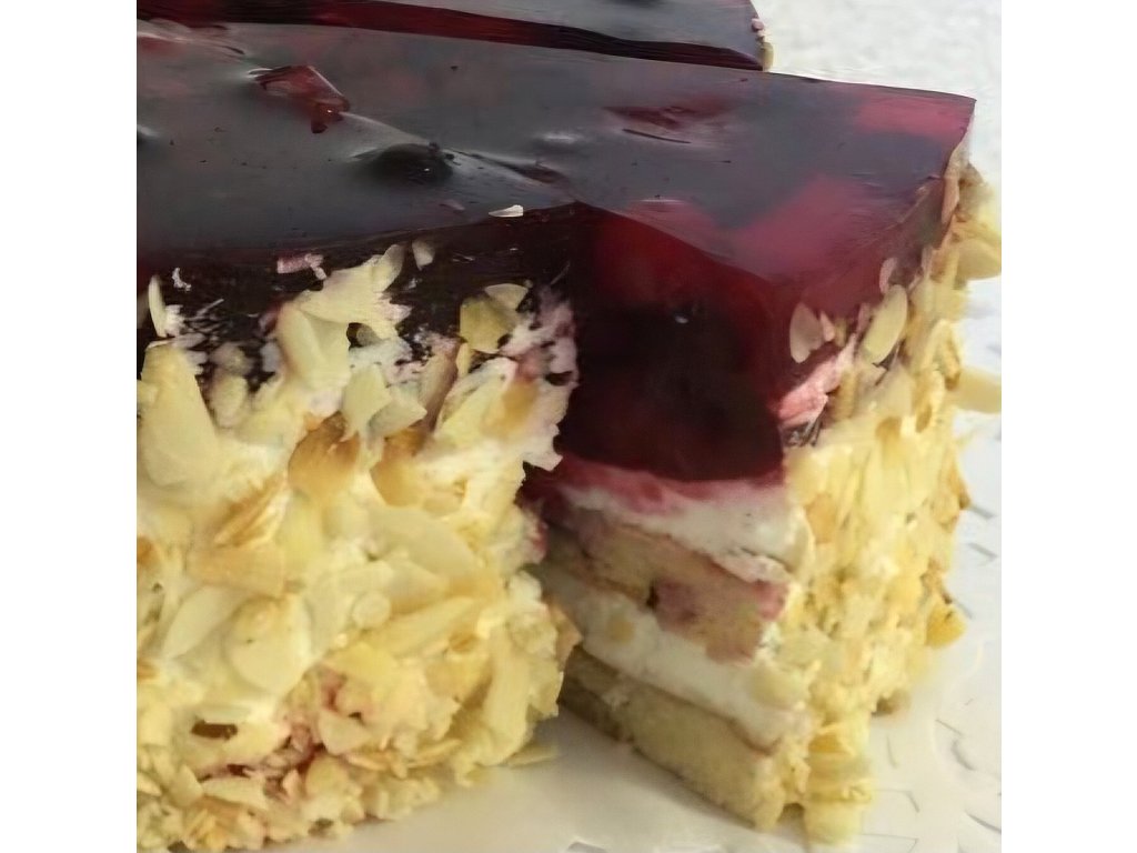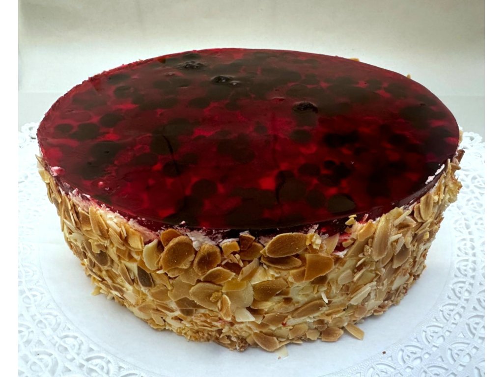 Lehký dort se světlým korpusem, odlehčenou jogurtovou šlehačkou a lesním ovocem.